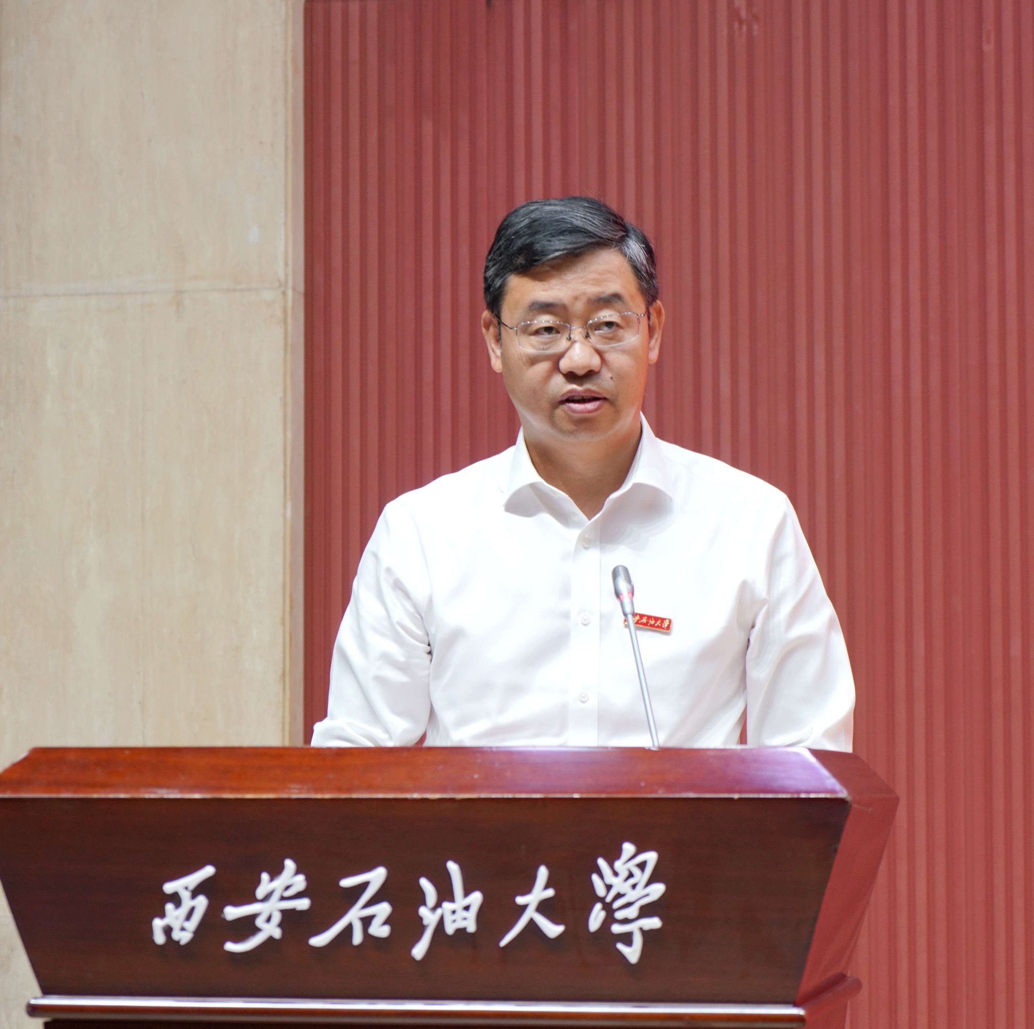 程永清在主持大会时指出,近年来,学校坚持人才强校战略,着力以教育家精神引领高素质教师队伍建设,统筹推进教育、科技、人才一体化改革,引导激励教师争做“四有”好老师、当好“四个引路人”,教师人才队伍建设取得显著成效,为学校高质量发展和地方经济社会发展作出了积极贡献。站在新的起点,广大教师要深入学习贯彻习近平总书记关于教育的重要论述,全面落实学校第三次党代会发展思路,紧密围绕建设“幸福西石大、文化西石大、一流西石大”主基调,坚持以“学科达标年、人才提升年、改革创新年”三个年活动为抓手,凝心聚力、团结奋进,以更加饱满的热情、更加昂扬的斗志、更加务实的作风,为推动学校高质量发展作出新的更大贡献。