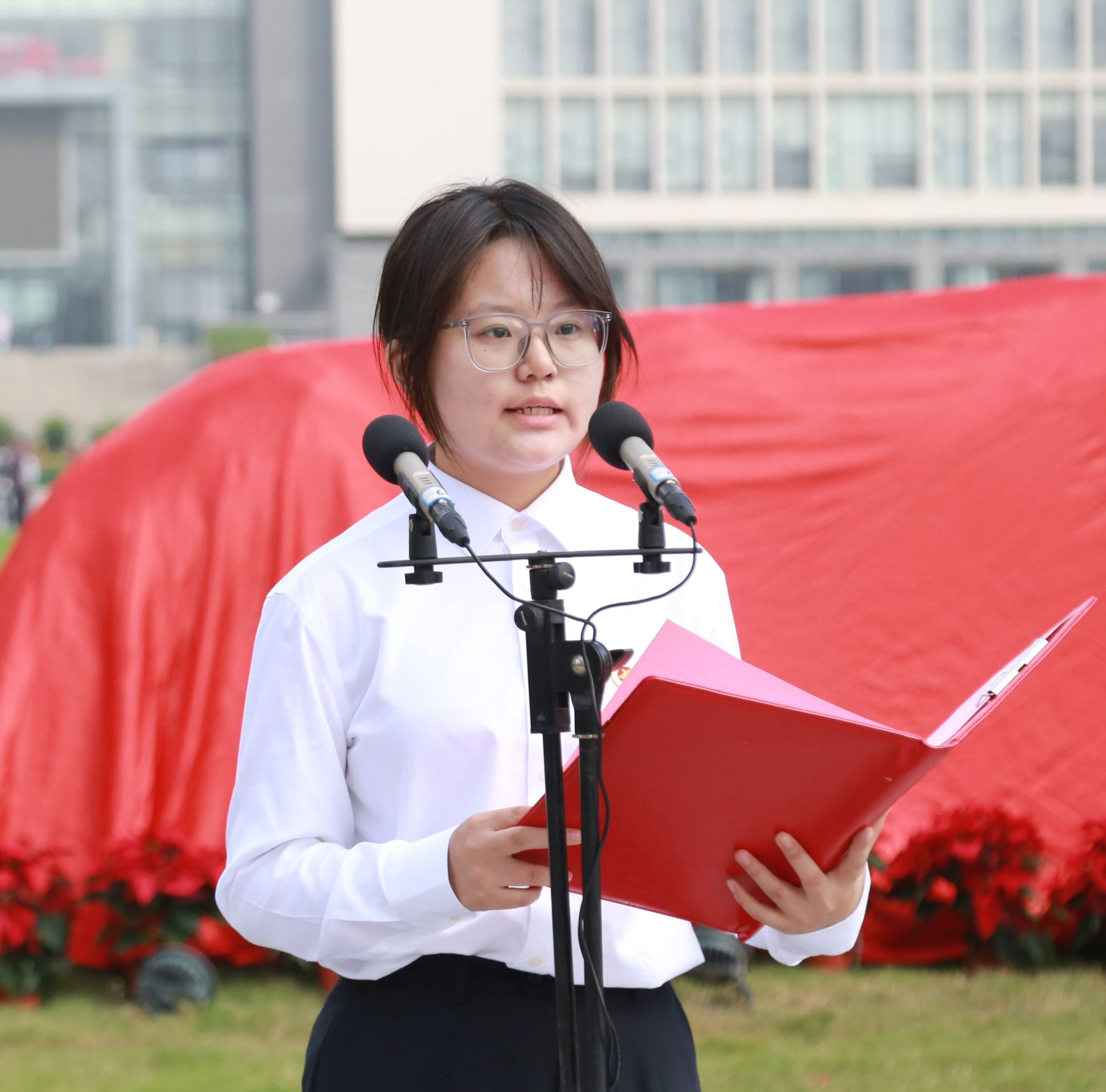 机械〈卓越班〉2502班刘颖珊同学作为学生代表发言。她号召全体同学珍惜优越的学习环境,牢记“好学力行、自强不息”的校训,坚定理想信念,锤炼过硬本领,将个人成长融入国家发展伟业,不负时代,不负韶华,以实际行动践行新时代青年的初心与使命。